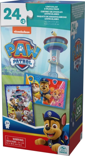 Zabaven komplet sestavljank z junaki iz serije PAW PATROL prinaša 2 različni 3D lentikularni sliki po 24 koščkov. Zahvaljujoč 3D učinku oživijo Chase, Marshall, Skye in drugi junaki kar pred očmi. Končana slika meri 22,9 × 15,2 cm in odlično razvija potrpežljivost, logično razmišljanje ter koncentracijo otrok od 4 let dalje.