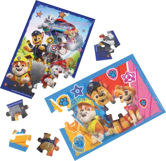 Odkrijte čar priljubljene serije PAW PATROL v kompletu sestavljank z 2 različnima motivoma. Ena prikazuje Chasea, Marshalla, Skye, Rubblea in Everest pri razglednem stolpu, druga pa barvito ozadje z Rubblom, Chaseem in Skye. Lentikularni 3D učinek doda slikam globino in naredi sestavljanje še bolj zabavno.
