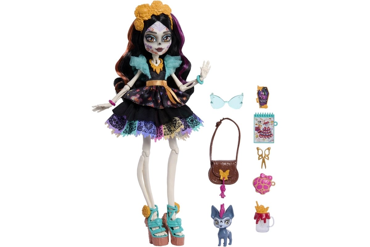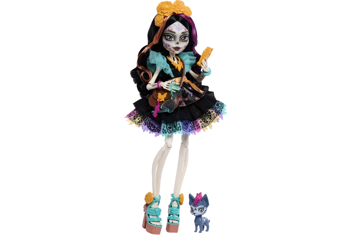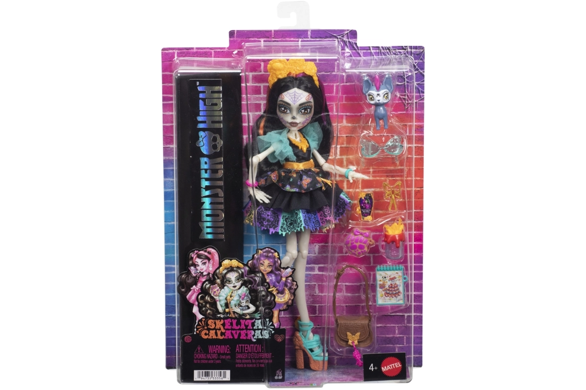Skelita Calaveras prinaša v svet Monster High edinstven videz, navdihnjen z Dnevom mrtvih. Zahvaljujoč izrazitemu ličenju, podrobno izdelanim oblačilom in številnim barvitim dodatkom bodo otroci uživali v urah domiselne zabave. Premični sklepi omogočajo enostavno poziranje in ustvarjanje lastnih modnih prizorov.