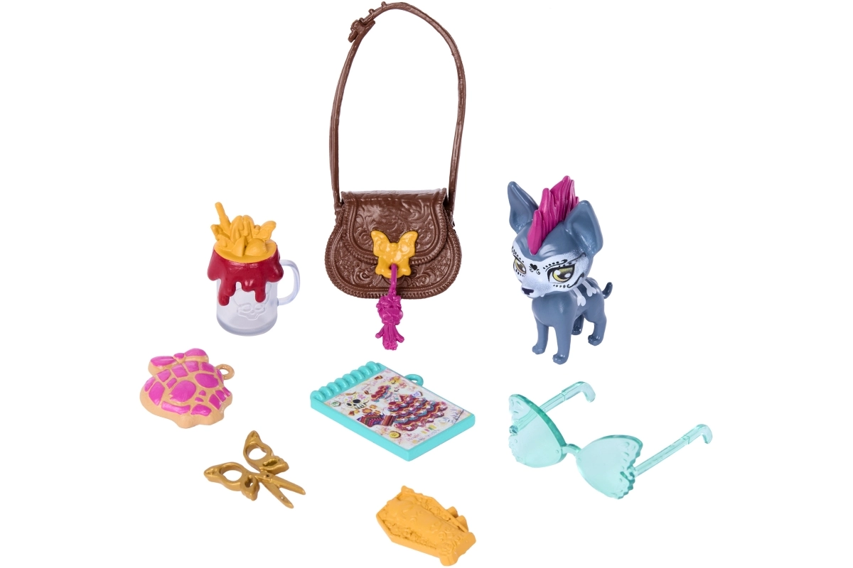 Del seta sta prisrčen ljubljenček Candelita in šest tematskih dodatkov – na primer torbica, sončna očala, beležka ali napitek. Z njimi lahko otroci razvijajo domišljijo, kombinirajo outfite in ustvarjajo zgodbe s šolskih hodnikov MONSTER HIGH.