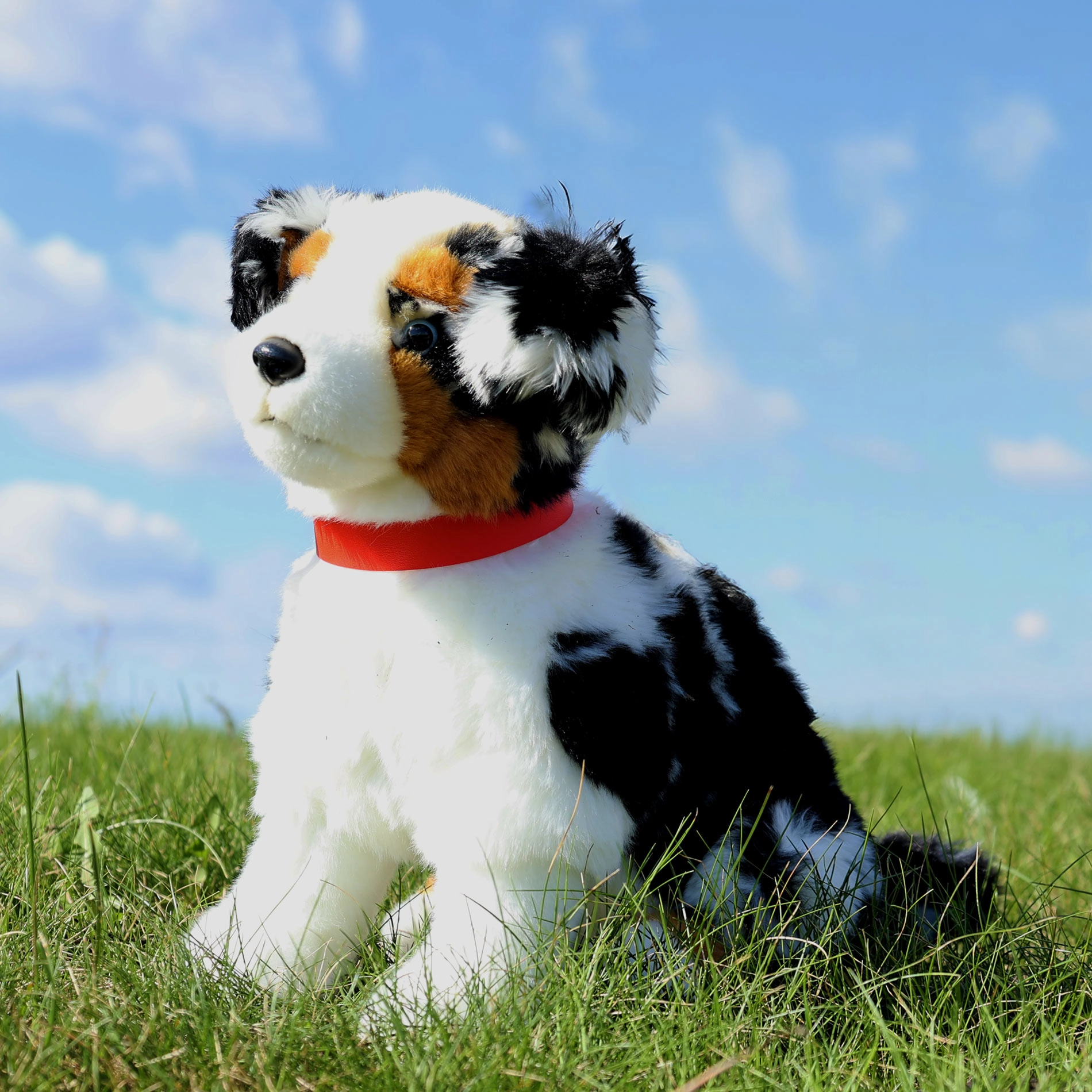 Odkrijte plišastega psa – avstralskega ovčarja v realistčni izvedbi z mehkim kožuščkom, prisrčnimi ušeski in kontrastnimi lisami. Zaradi skrbnega ročnega šivanja in kakovostnih materialov deluje kot živ in je pripravljen postati zvest spremljevalec za igro, crkljanje in dekoracijo.