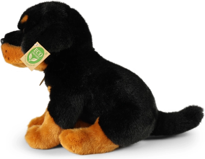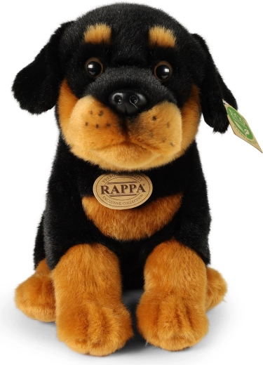 Ta sedeči plišasti pes pasme rotvajler navduši z zvestimi detajli, mehkim kožuščkom in skrbno ročno izdelavo, zaradi česar deluje kot živ. Idealen je kot crkljiv prijatelj v posteljici, v otroški sobi ali kot prisrčna dekoracija.