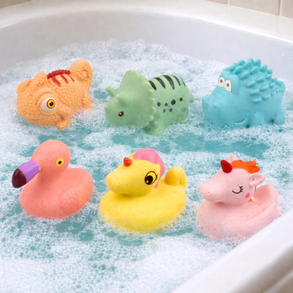 Lahke in plavajoče živalice otrokom olajšajo igro v kadi, pod prho in v bazenčku. Zahvaljujoč mehkem materialu jih je mogoče varno stiskati in preprosto prenašati.