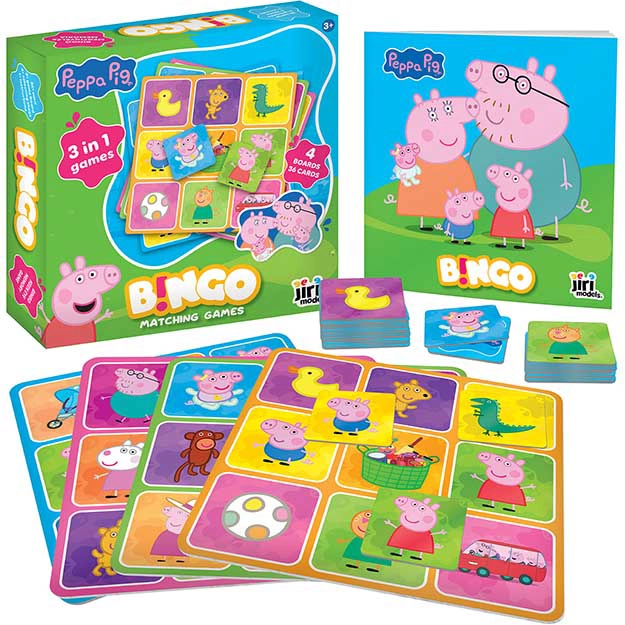 Uživajte v družinski zabavi z najljubšimi liki iz PUJSA PEPA. Ta otroška različica binga je zasnovana tako, da je enostavna za razumevanje, hitra in polna radosti odkrivanja. Zahvaljujoč trem načinom igre se otroci ne dolgočasijo ter lahko vadijo zbranost, opazovanje podrobnosti in igralno strategijo.