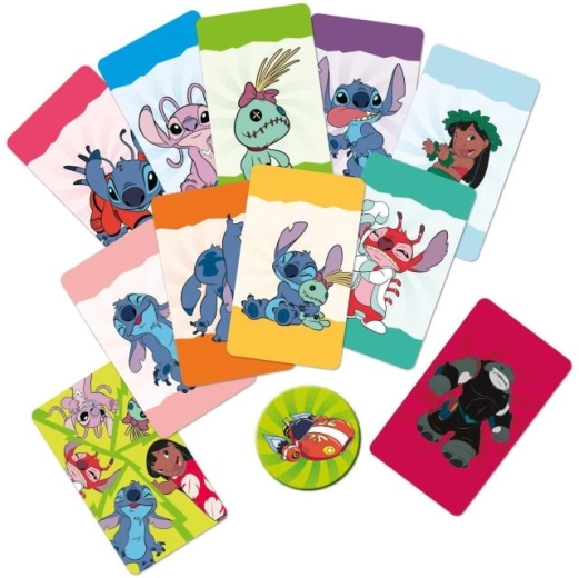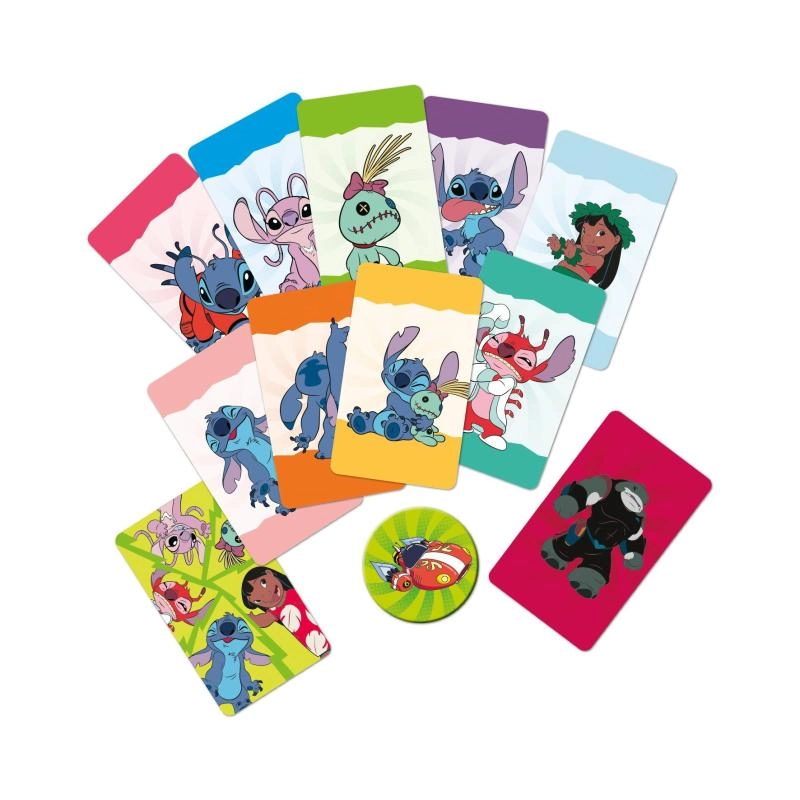 Uživajte v hitri zabavi z priljubljenima likoma STITCH in Angel v kompaktni potovalni kartni igri. Zmaga tisti, ki prvi zbere 5 kart iste barve. Idealno za 2–5 igralcev od 5 let naprej – preprosta pravila, živahni krogi in veliko smeha kjerkoli in kadarkoli.