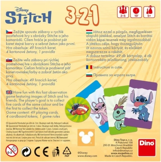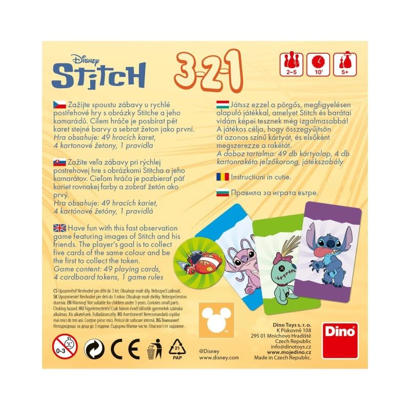 Iščete živahno in lahko razumljivo igro za na pot? 3-2-1 STITCH potovalna kartna igra prinaša pisano zabavo s priljubljenima junakoma STITCH in Angel. Cilj je čim hitreje sestaviti pet kart iste barve in prehiteti nasprotnike.
