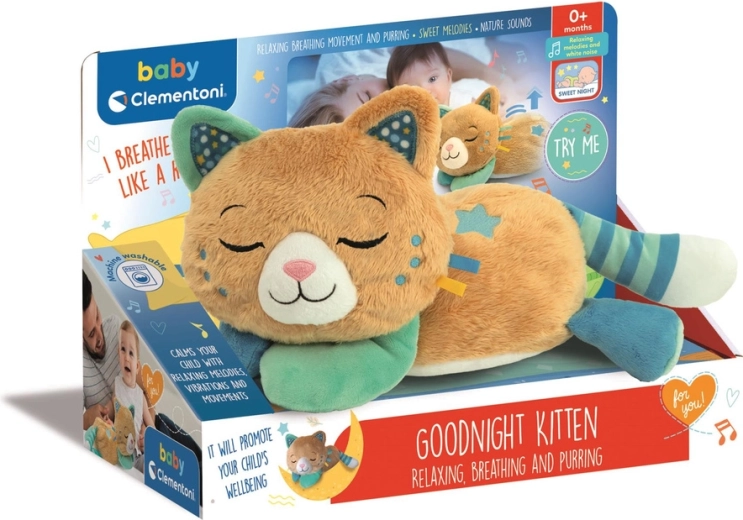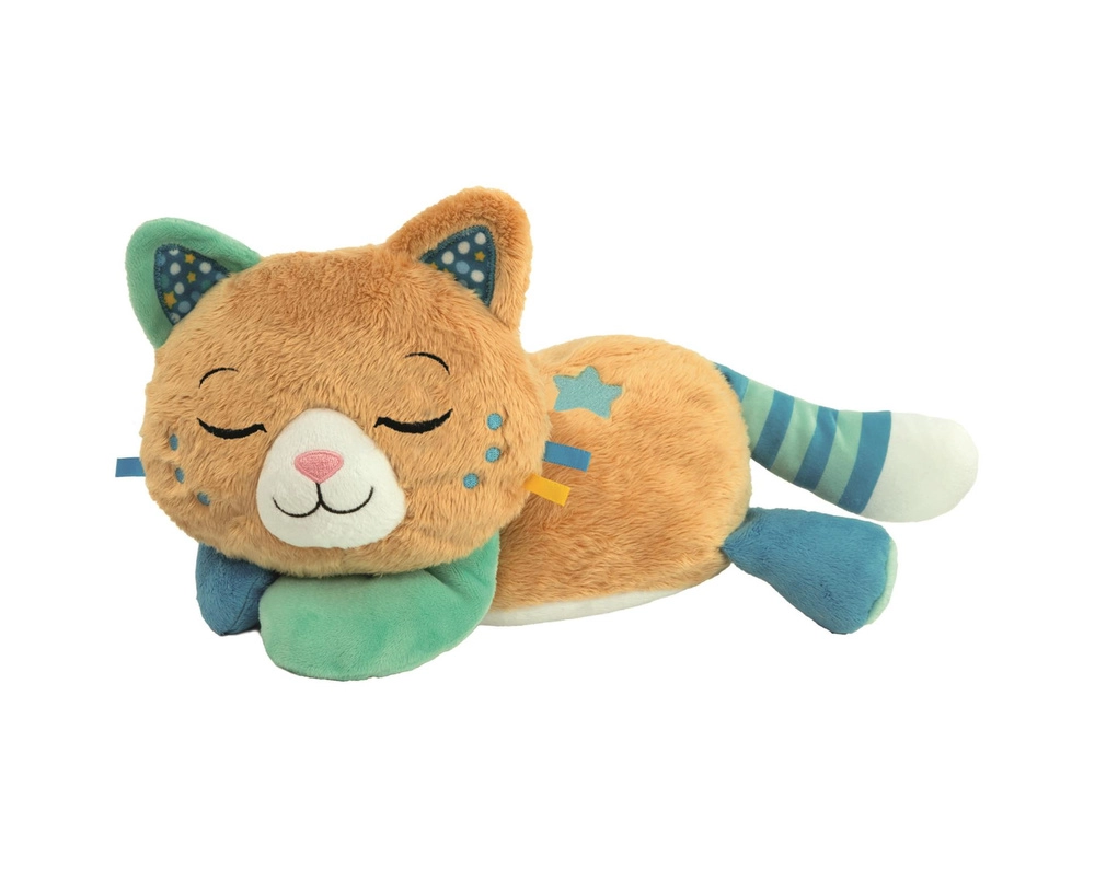 Predeča mačka Morfeusz je izjemno mehka plišasta igrača za dojenčke od rojstva dalje, ki pomirja in pomaga zaspati. Zahvaljujoč inovativnemu zvočnemu modulu in nežnim vibracijam posnema naravno predenje in mirno dihanje mačke, kar ustvarja občutek varnosti in sprostitve. Enostavna za vzdrževanje – po odstranitvi elektronskega modula jo lahko operete v pralnem stroju.