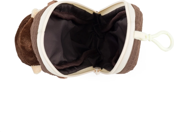 Ljubek otroški etui za barvice in svinčnike z motivom opice, ki ga bodo otroci vzljubili. Na sprednji strani je prišita plišasta opica, ki deluje kot mali stražar vseh zakladov. Etui je izdelan iz mehkega plišastega materiala v kombinaciji z odporno tekstilno tkanino, ima podlogo iz poliestra za zaščito vsebine in praktično karabinico za pripenjanje na nahrbtnik. Primerno za otroke od 3 let dalje.