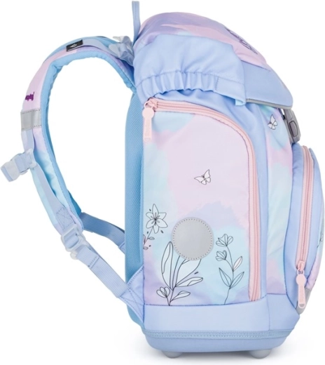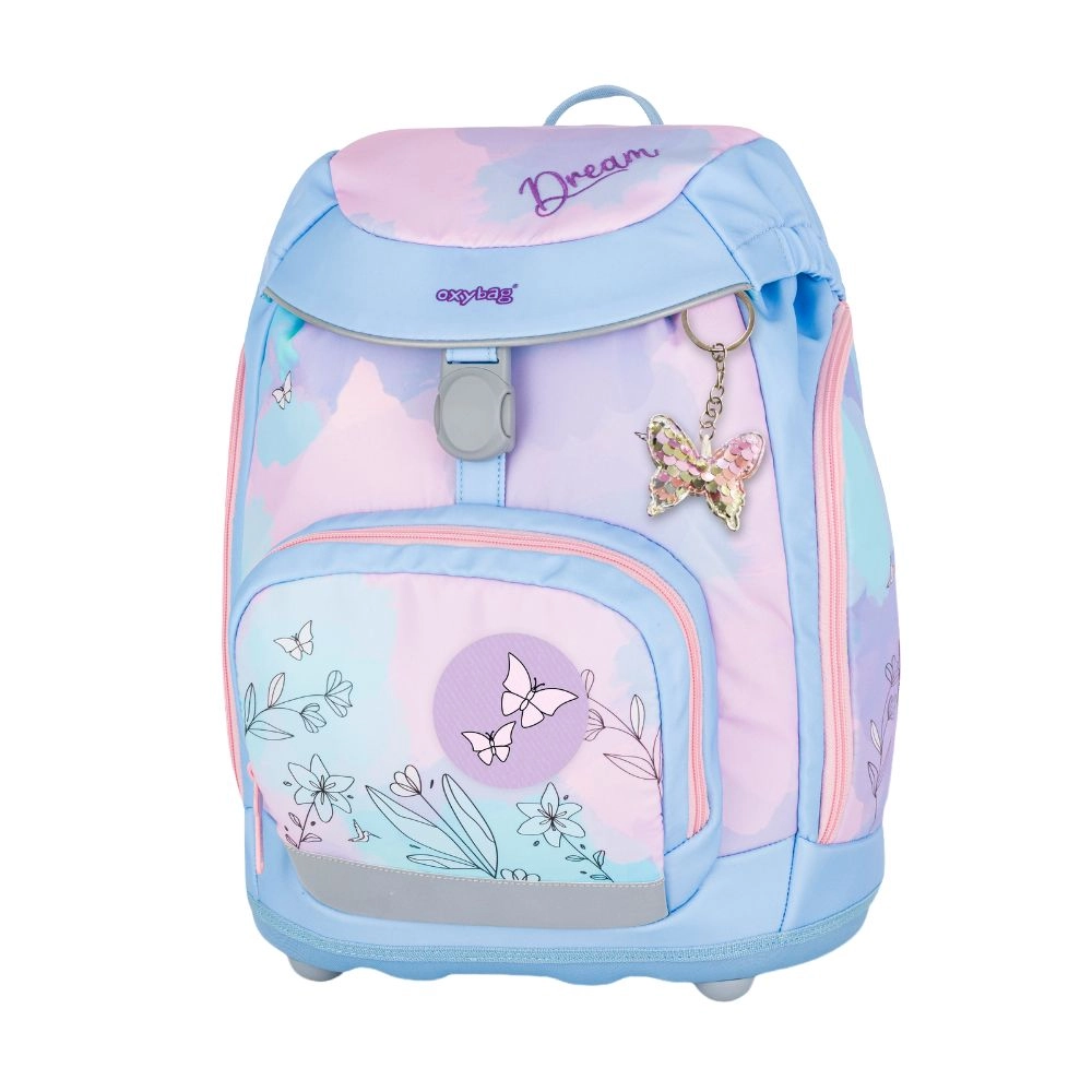 Šolski set 4 kosov OXYBAG Sherpy Kolibrček prinaša lahek in premišljeno zasnovan nahrbtnik z nežnim pastelnim dizajnom z motivi kolibrčkov in metuljev, dopolnjen z ujemajočo se peresnico, vrečko ter kompletom zamenljivih značk na ježka. Otroci si tako lahko prilagodijo videz glede na razpoloženje in hkrati ohranijo vse šolske potrebščine pregledno urejene.