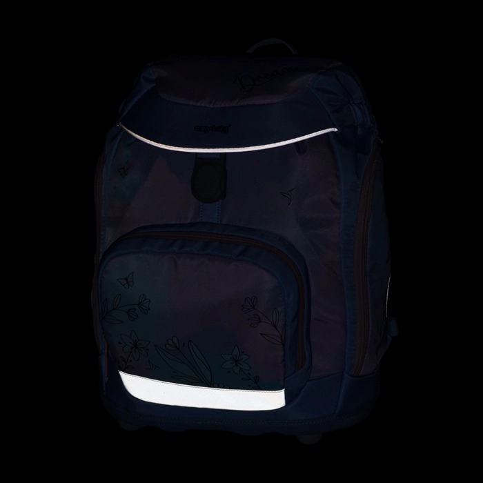 Čvrsto dno s plastičnimi nogicami preprečuje prevrnitev in omogoča, da nahrbtnik samostojno stoji. Odsevni elementi povečujejo vidnost in varnost otroka.