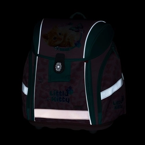 Premium šolski set z motivom »Little Kitty« je zasnovan za udobno in varno nošenje šolskih potrebščin vsak dan. Izjemno lahka konstrukcija aktovke (le 970 g) skupaj z anatomsko oblikovanim hrbtiščem in širokimi naramnicami pomaga enakomerno porazdeliti težo. Zahvaljujoč prsnemu in zateznim trakovom aktovka odlično sedi in ne zdrsne z ramen. Varnost otrok povečujejo odsevni elementi, vidni z vseh strani.