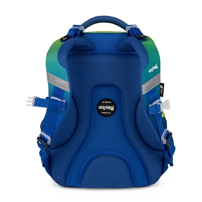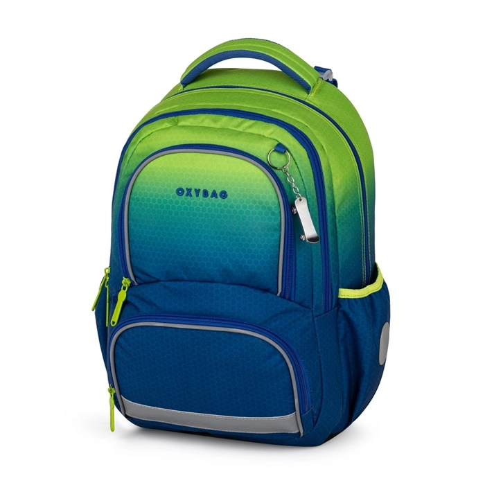 Premišljena organizacija vključuje več predelkov in žepov, vključno z dvema prostornima stranskima žepoma ter držalom za ključe/šolski čip, zato se nič ne izgubi. Set dopolnjujeta prostorna peresnica OXYBAG in lahka vrečka za šport v ujemajočem se ombre dizajnu, idealna za shranjevanje pisal in športnih oblačil.