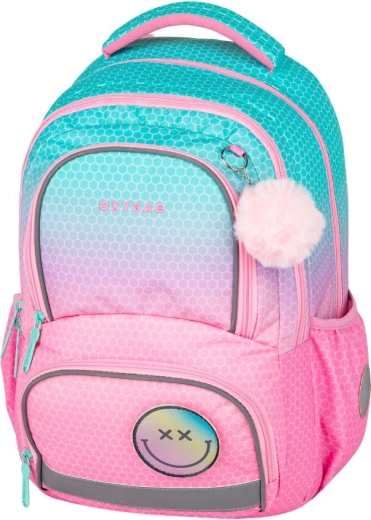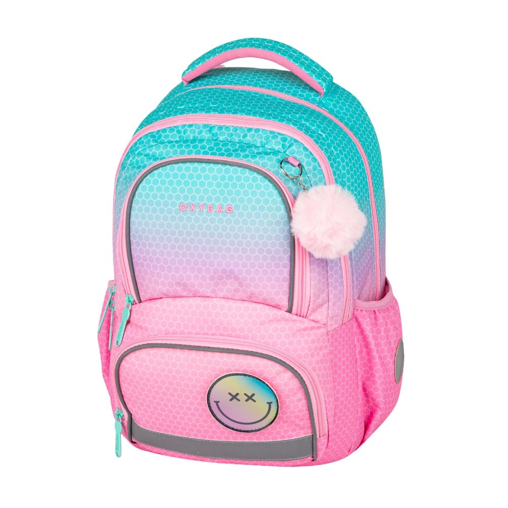 Šolski set OXYBAG OXY NEXT Ombre Pink je zasnovan za vsakodnevno udobje in red. Otroci bodo cenili pregledno organizacijo zahvaljujoč več prostornim predalom in žepom, vključno z držalom za ključe/čip in dvema stranskima žepoma za steklenico ali drobnarije. Anatomsko oblikovan hrbtni del in oblazinjene naramnice s prsnim trakom zagotavljajo prijetno nošenje tudi pri polni obremenitvi.