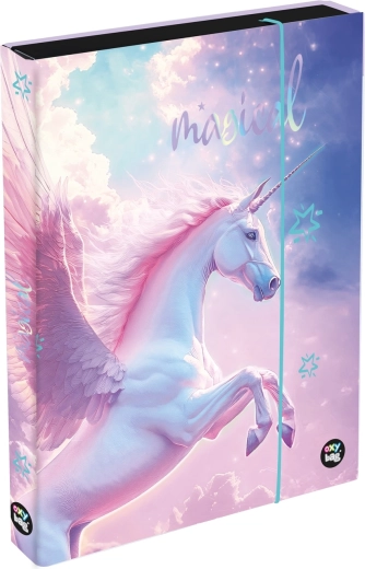 Škatla za zvezke A5 Jumbo Pegaz je idealna izbira za vsakodnevno uporabo v šoli in doma. Zaradi čvrste laminirane površine so vaši dokumenti in zvezki zaščiteni pred mečkanjem in umazanijo. Elastična guma zanesljivo drži vsebino na mestu.