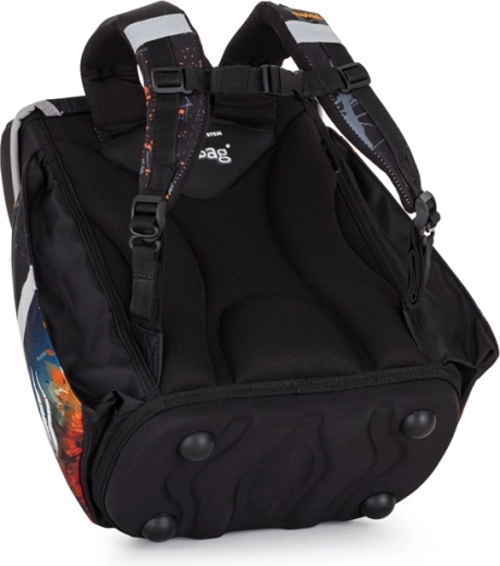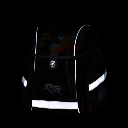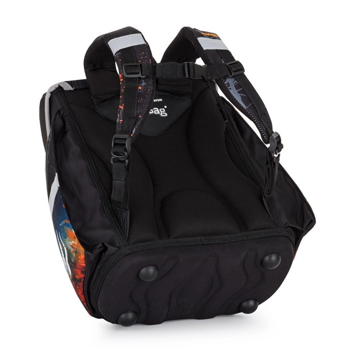 Ergonomsko oblikovano hrbtišče iz zračnega materiala, široke podložene naramnice ter prsni in zatezni trakovi zagotavljajo udobno nošenje in enakomerno porazdelitev bremena. Varnost povečujejo odsevni elementi, medtem ko magnetno zapiranje omogoča hitro in preprosto odpiranje. Nahrbtnik priporočamo šolarjem od višine 121 cm.