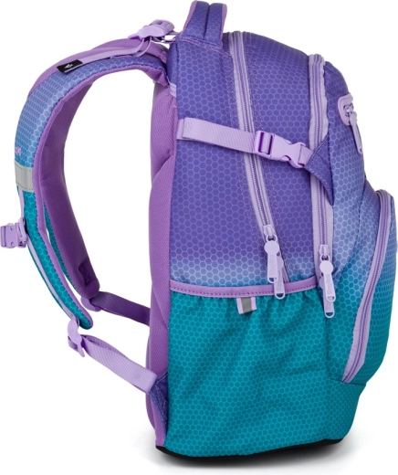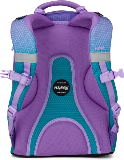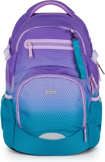 Šolski nahrbtnik OXY Ombre v privlačni modro‑rožnati izvedbi združuje sodoben dizajn z ergonomijo za vsakodnevno udobje. Zaradi anatomsko oblikovanega hrbtnega panela in oblazinjenih naramnic odlično sedi na hrbtu, medtem ko nastavljiv prsni trak pomaga enakomerno porazdeliti težo. Čvrsto dno ohranja nahrbtnik stabilen in ščiti vsebino.