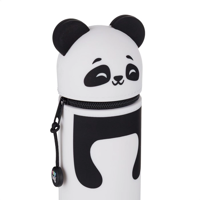 Ta silikonski etui Panda združuje prisrčen dizajn in vsakodnevno praktičnost. 3D ušeska na pokrovčku ustvarjajo izviren videz, medtem ko je mehak silikon prijeten na dotik, lahek in enostaven za čiščenje. V notranjosti boste našli zanko za pritrditev radirke ter en prostoren žep na zadrgo za barvice, kemične svinčnike in drobnarije.