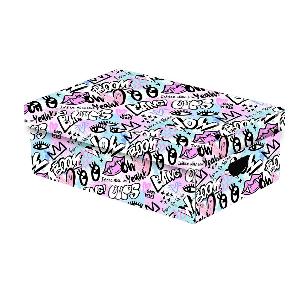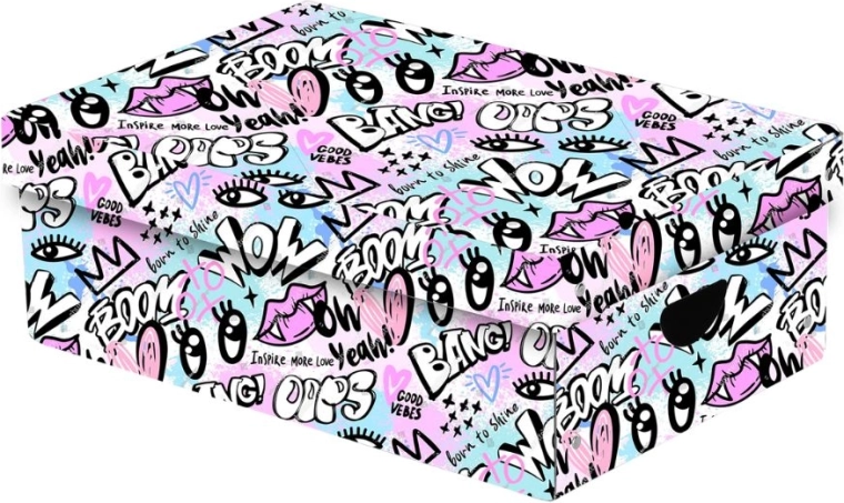Ohranite red s prostorno škatlo iz odpornega lamina, ki vaše stvari zaščiti pred prahom in poškodbami. Zahvaljujoč priročnim izrezom za ročaje jo zlahka prenesete kamor koli potrebujete. Dizajn »Funny Girl« vašemu interierju doda igriv in sodoben pridih.