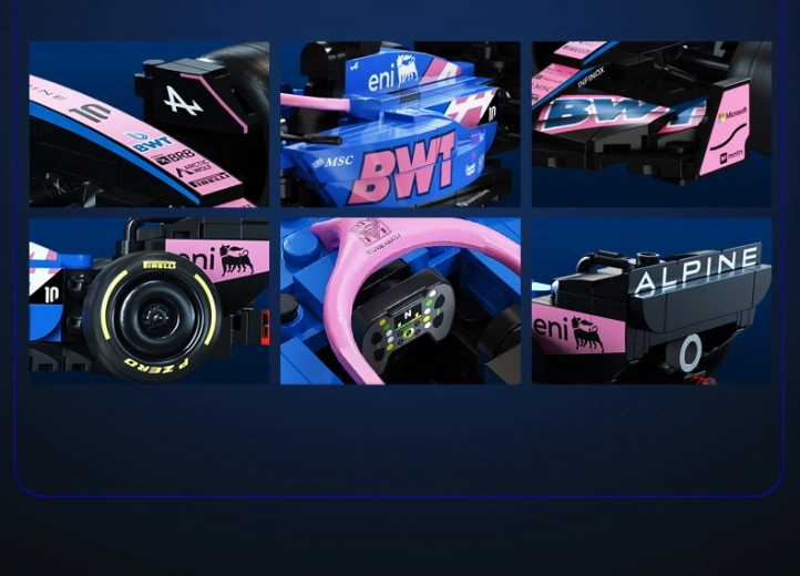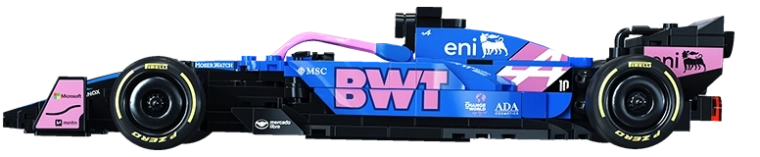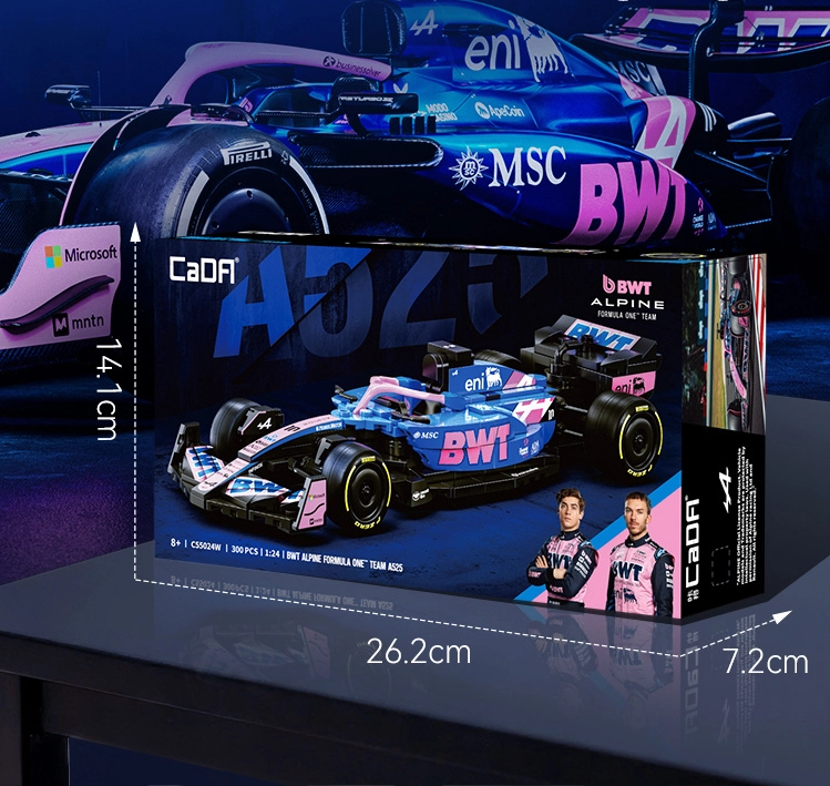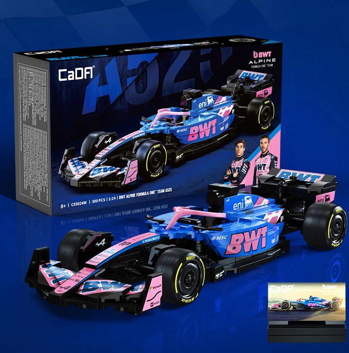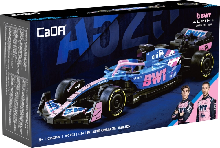 Ta dizajnerski konstruktor CaDA zvesto ujame agresivno silhueto in izrazite barve enosedežnika BWT ALPINE F1 A525. Zahvaljujoč bogatim detajlom, potiskom na elementih in premišljeni zasnovi je idealen kot stilski eksponat v vitrini ter kot navdih za kreativno igro.
