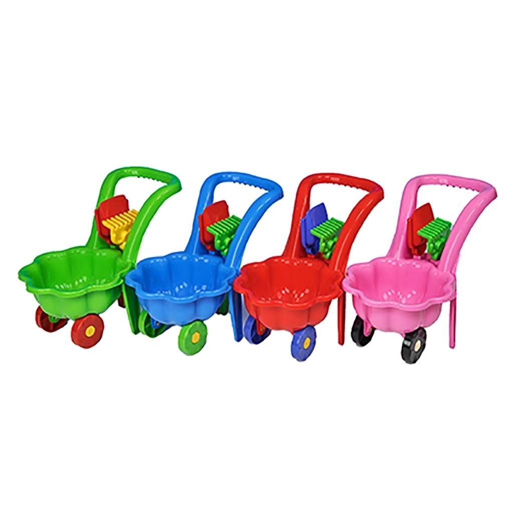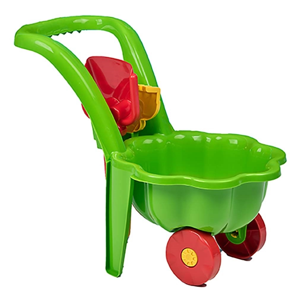Odkrijte svet otroške domišljije z vrtnim vozičkom BAYO Marjetica v zeleni barvi. Set vsebuje voziček, grabljice in lopatko – vse iz čvrste in varne plastike, s katero bodo otroci z užitkom prenašali zemljo, listje ali pokošeno travo. Odlično za dom in vrtce.