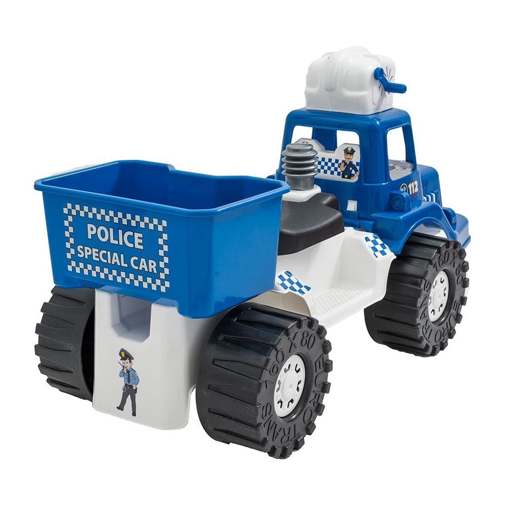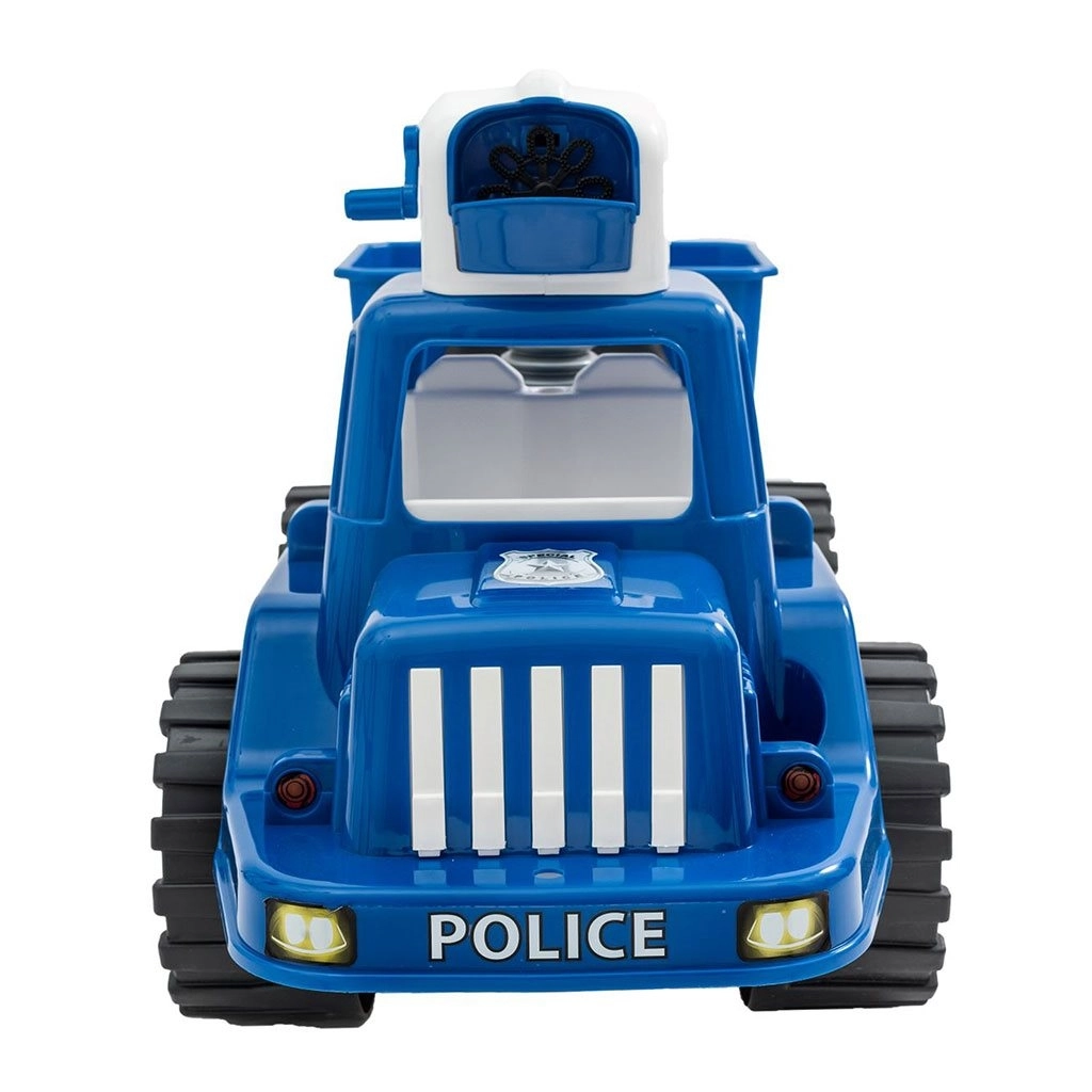 Pod sedežem je priročna škatla za igrače ali raztopino za mehurčke, da ima mali policist vse pri roki tudi na daljših pustolovščinah.