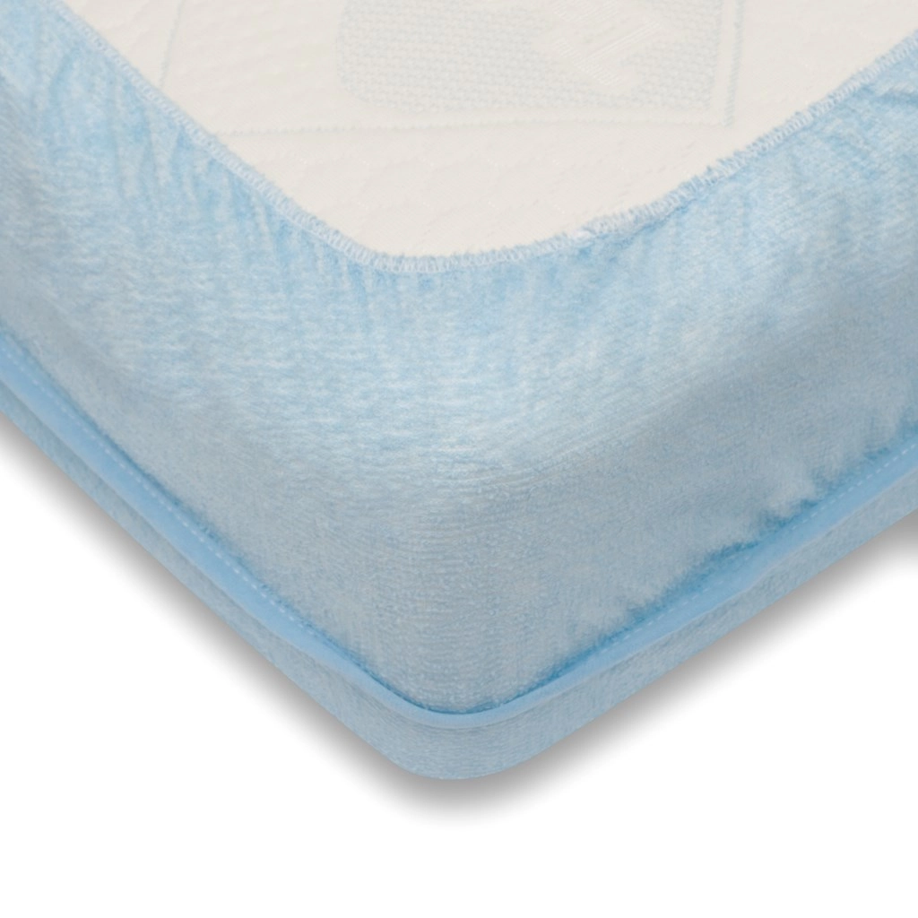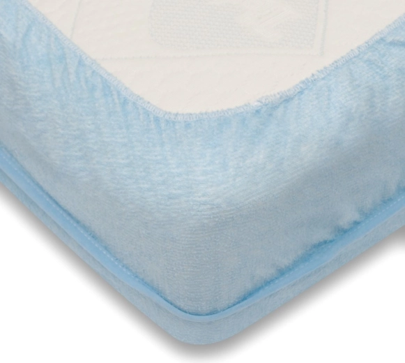 Neprepustna frotirna rjuha v svetlo modri barvi je odlična izbira za udobje in higieno v otroški posteljici. Mehak bombažni frotirni površinski sloj je prijeten na dotik, medtem ko spodnja zaščitna plast učinkovito preprečuje prepuščanje tekočin in ščiti vzmetnico pred umazanijo.