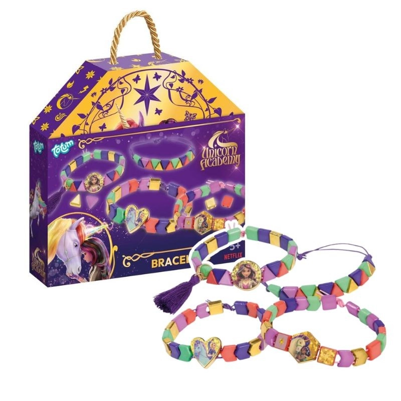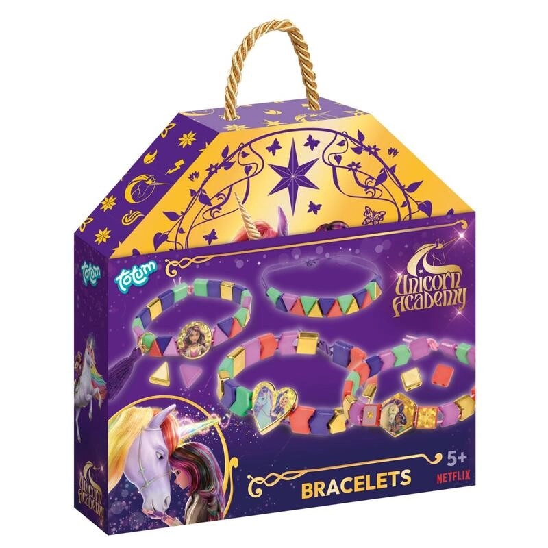 Elastična zasnova in lahki materiali zagotavljajo udobno nošenje. Zapestnice z motivi Unicorn Academy bodo postale priljubljen dodatek.