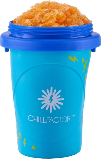 Slushy Maker CHILLFACTOR v modri barvi v nekaj minutah spremeni tvoj najljubši ohlajen napitek v fino ledeno lučko. Uporaba je preprosta – lonček najprej zamrzneš, naliješ napitek, namestiš pokrov in stiskaš. Rezultat? popolna domača ledena lučka kadarkoli si zaželiš.