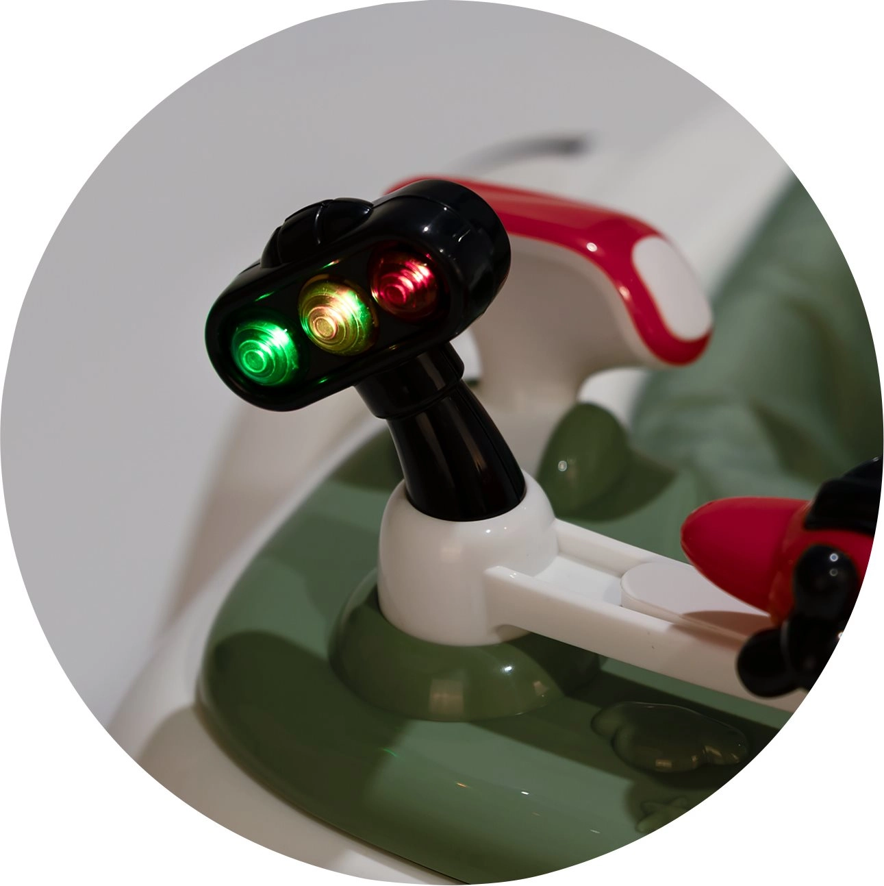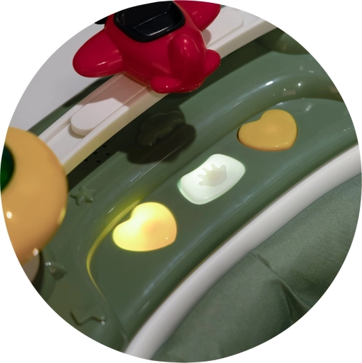 Zabavni gumbi, svetlobni učinki in premične igrače razvijajo čute in fino motoriko ter otroka zaposlijo za dalj časa.