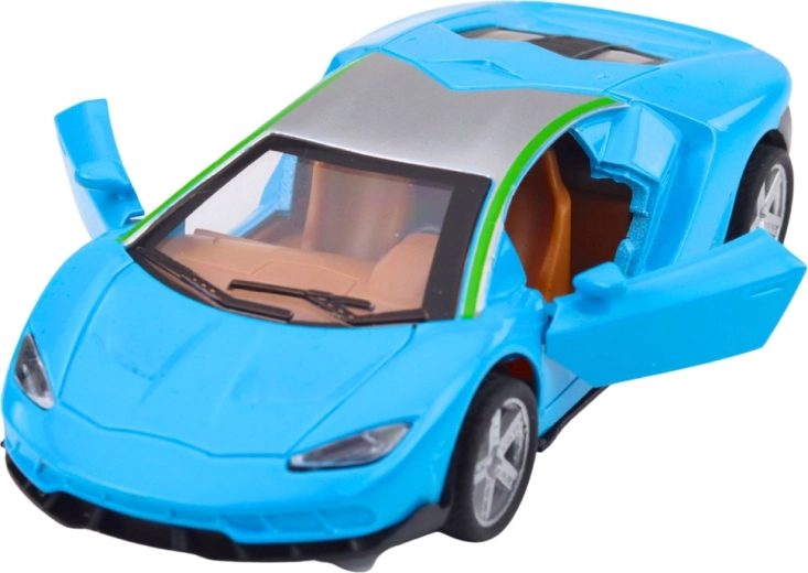 Odkrijte kompaktni športni avto v merilu 1:32 s kovinsko karoserijo, ki izstopa po trdnosti in pristnem videzu. Zahvaljujoč vzmetnemu (pull-back) pogonu je dovolj, da vozilo potegnete nazaj in odbrzi naprej. Odpirajoča se vrata razkrijejo dovršen interier, svetlobni in zvočni učinki pa še okrepijo realističen doživetje igre.