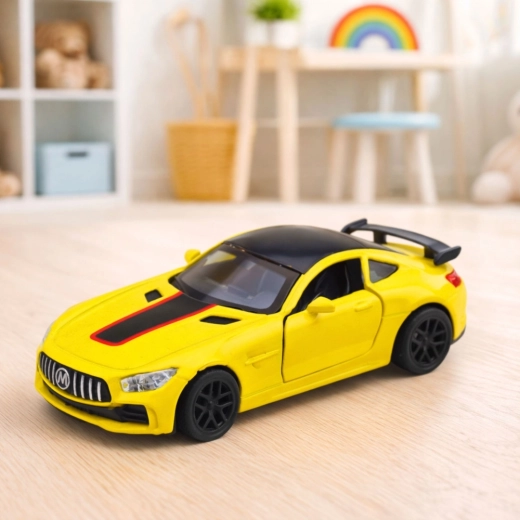 Ta podrobno izdelan kovinski športni avtomobil 1:32 združuje odporno kovinsko ohišje s preciznimi plastičnimi deli. Agresivne linije karoserije, zadnji spojler in kontrastni detajli poudarjajo dirkaški značaj modela, ki je videti odlično tako na polici kot v akciji.