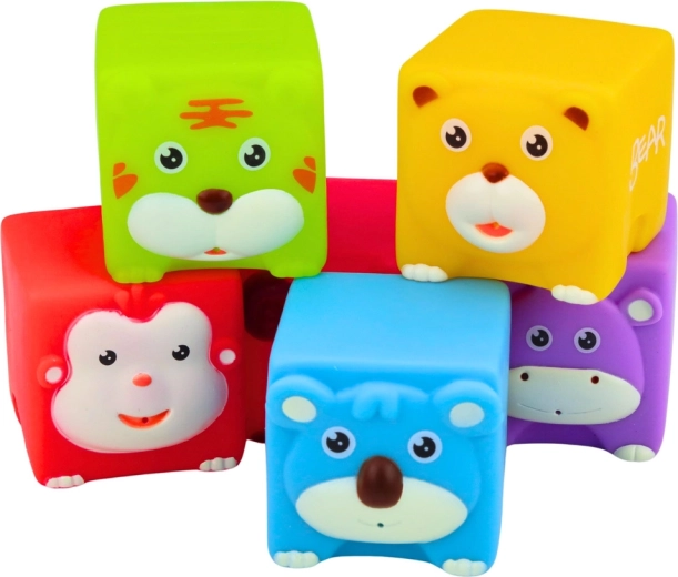 Varen mehak material brez ostrih robov je primeren za vsakodnevno igro in za v kopel. Komplet 6 kock je odlično darilo, ki združuje zabavo in učenje – otroci vadijo barve, poimenovanja živali ter zlaganje preprostih konstrukcij.