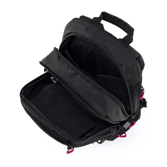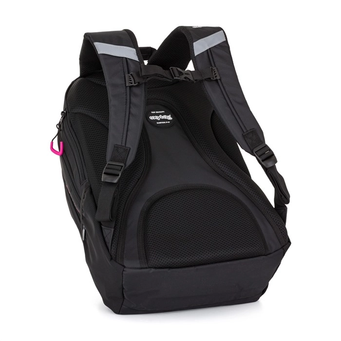 Oblazinjene, nastavljive naramnice, ergonomsko oblikovan hrbtni del in prsni trak enakomerno porazdelijo obremenitev in izboljšajo udobje pri nošenju v šolo in v prostem času.