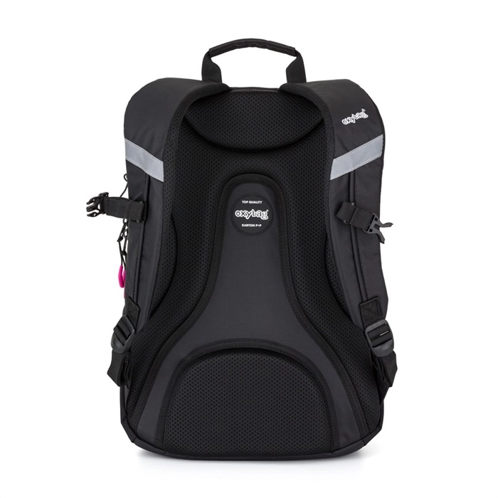 Stilski šolski in prostičasni nahrbtnik OXYBAG v setu z etuijem ponuja ergonomsko oblikovan hrbtni del, oblazinjene nastavljive naramnice s prsnim trakom ter dovolj prostora za šolo in vsakodnevno nošenje. Dva glavna predala, ojačan žep za prenosnik, stranski žep za steklenico in številni odsevni elementi poskrbijo za udobje, red in varnost. Prostornina 24 l, teža 870 g, nosilnost 8 kg.
