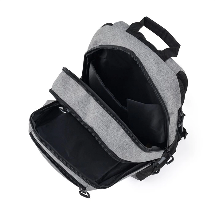 Dva glavna predala, sprednji žep z organizatorjem, karabin za ključe in ojačan žep za prenosnik poskrbijo, da je vse pregledno in na varnem.