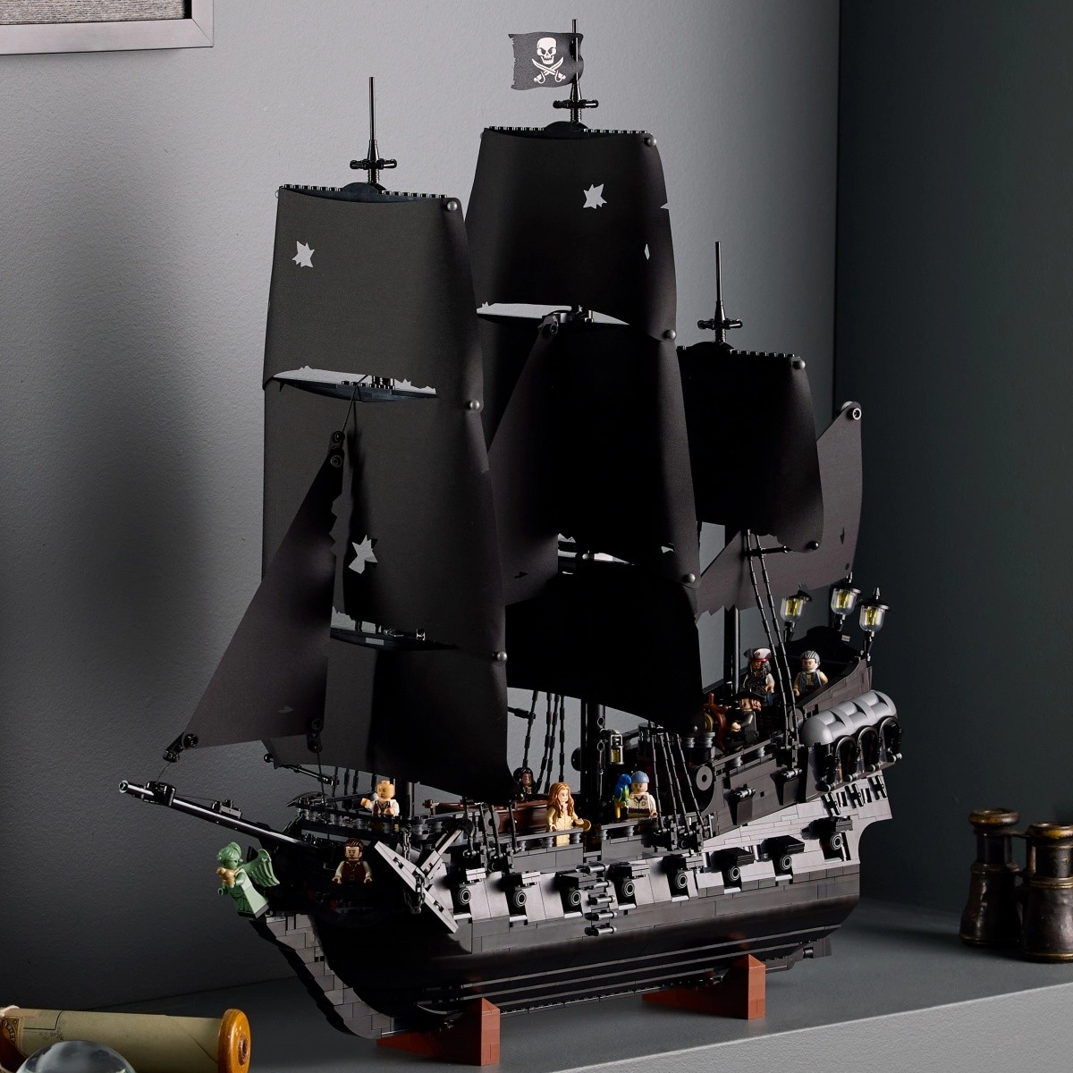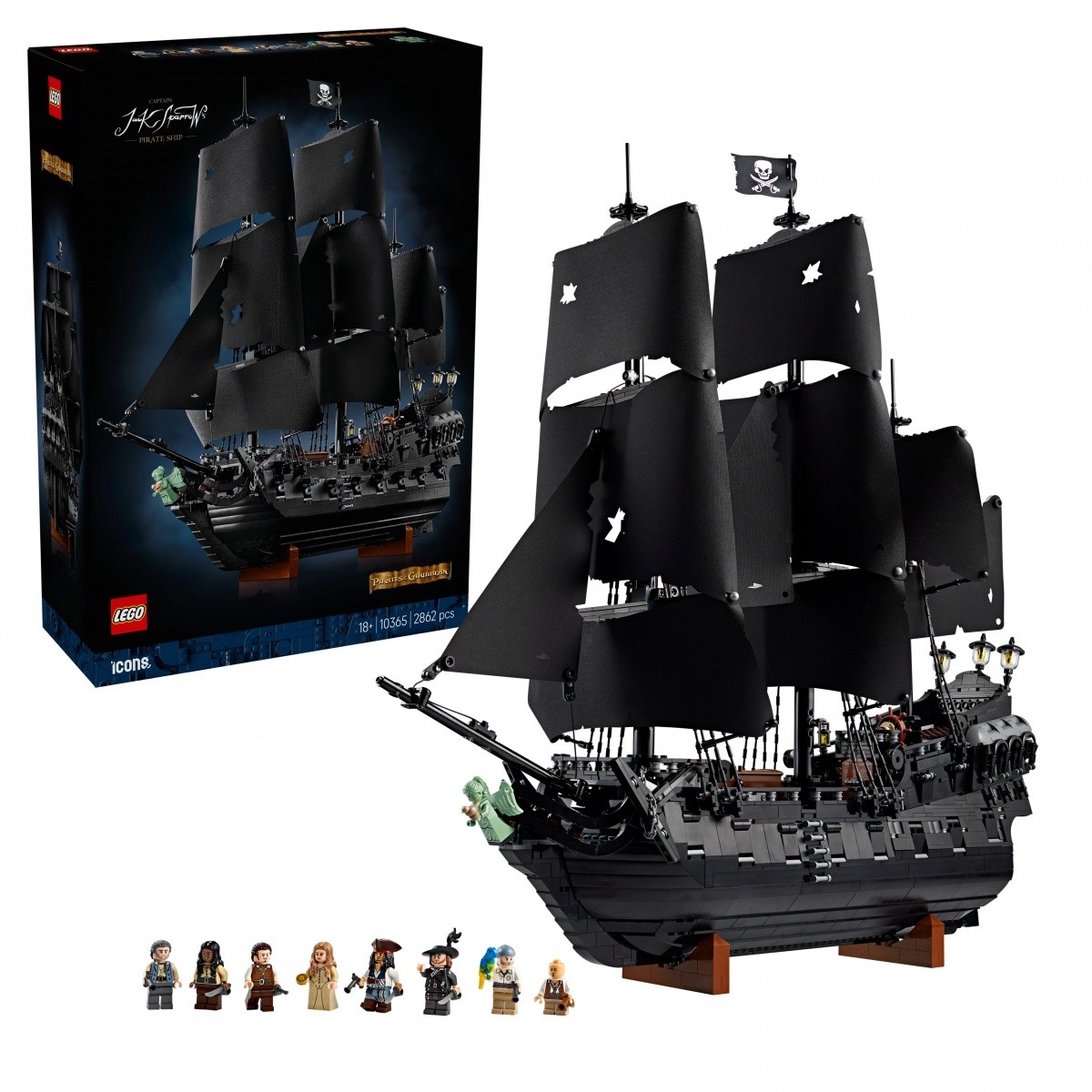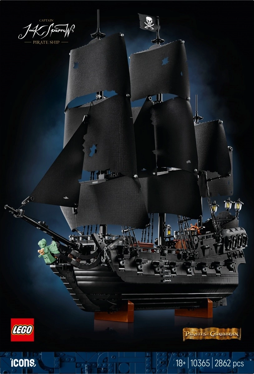 Zgradite legendarno prikazensko galejo, navdihnjeno s filmsko serijo Pirati s Karibov. Model navduši z visokimi jambori, črnimi jadri s simbolom lobanje in prekrižanih kosti, bogato oblikovano palubo ter notranjostjo, vključno s pohištvom, svečniki in ikoničnim kapitanovim jabolkom. Zahvaljujoč univerzalnemu stojalu lahko ladjo preprosto razstavite pod kotom kot impresivno dekoracijo za dnevno sobo ali pisarno.
