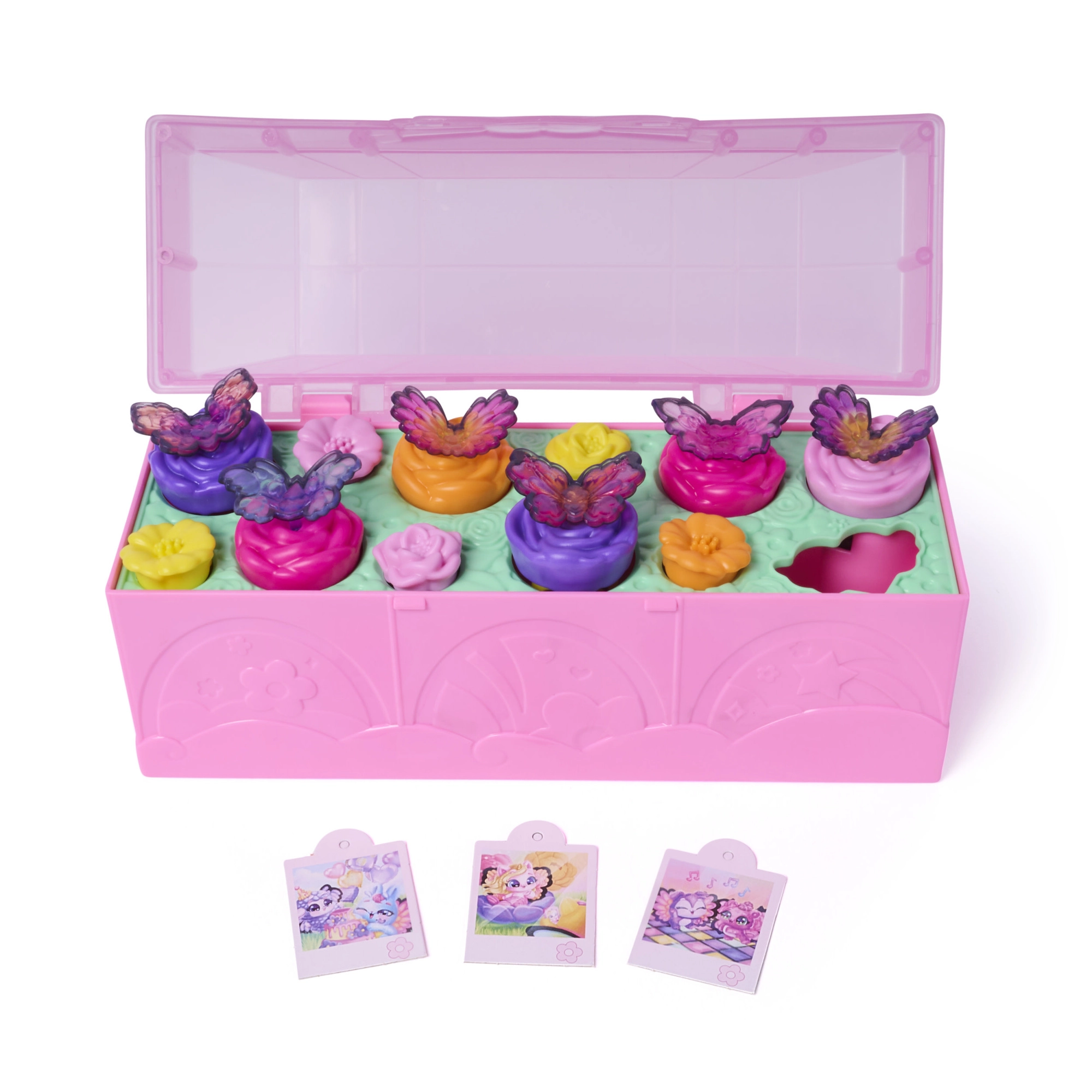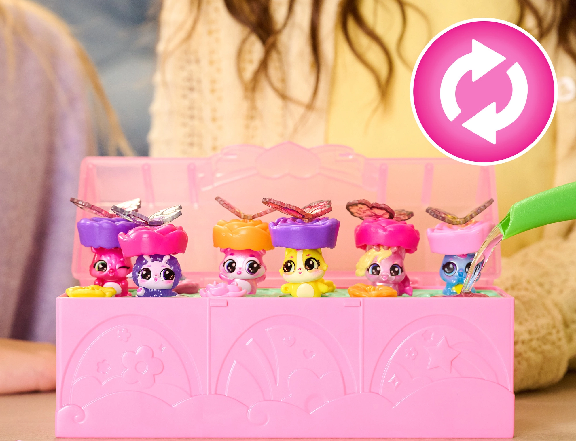 Vlijte vodo v srce kovčka in opazujte, kako cvetovi zrastejo ter razkrijejo ljubke Bloomables. Čarobni trenutek presenečenja navduši pri vsaki igri.