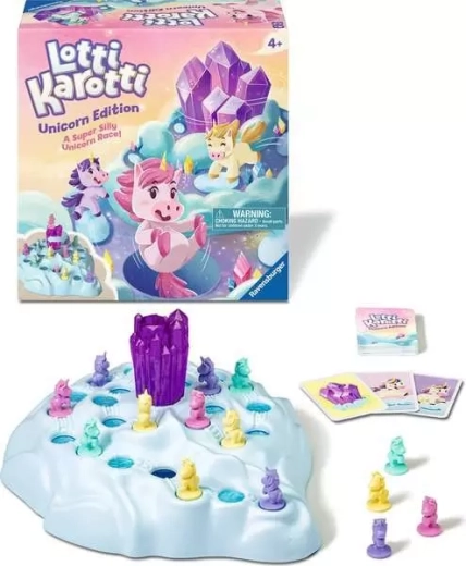 Čarobna družinska igra Lotti Karotti Samorogi znamke Ravensburger prinaša napetost, smeh in preprosta pravila za otroke od 4. leta dalje. Zavrtite bleščeči kristal, raziščite premične luknje na oblačni gori in pripeljite svojega samoroga do vrha prej kot ostali. Prisrčne figure v pastelnih barvah, hiter potek igre in zabava za vso družino naredijo to izdajo idealno darilo za božič, rojstne dneve in veliko noč.