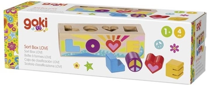 Lesena vstavljanka LOVE znamke GOKI otrokom prinaša veselje ob odkrivanju oblik in barv. Masiven les in skrbna izdelava zagotavljata dolgo življenjsko dobo, zaobljeni robovi in neškodljive barve pa varnost pri igri. S pisano paleto koščkov in jasno izrezanimi odprtinami se otroci učijo logičnega mišljenja in potrpežljivosti.