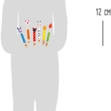Ta set vsebuje šest različnih piščalk, ki s svojim živahnim dizajnom in zabavnimi živalskimi motivi pritegnejo pozornost vsakega otroka. S očarljivimi liki, kot sta krava ali petelin, lahko otroci eksperimentirajo z različnimi toni in začnejo odkrivati svet glasbe. Preprosto upravljanje s premikanjem lesene palčke omogoča igranje raznolikih melodij. Ne gre za klasične glasbene instrumente, temveč za čudovite igrače, ki razvijajo talent, občutek za ritem in melodijo.