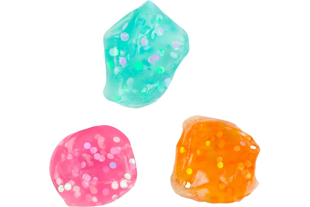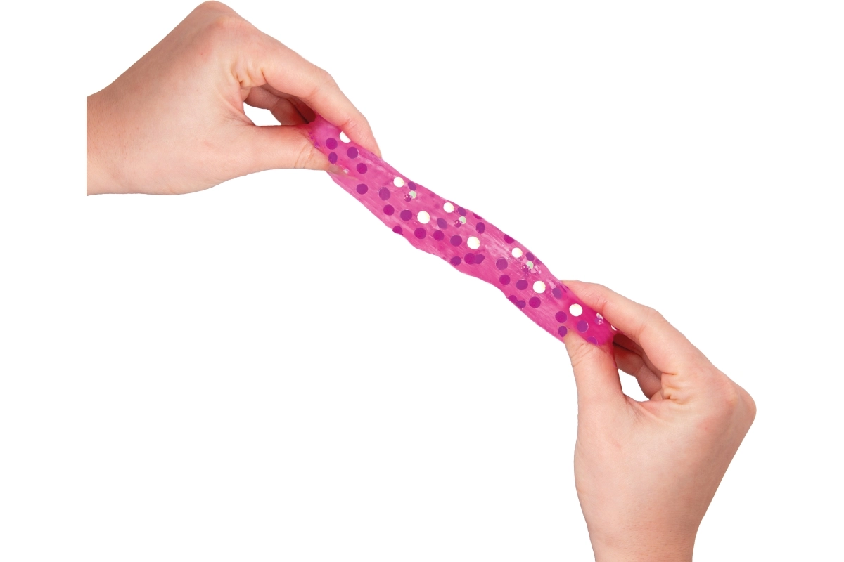 Ta pisana sluz z velikimi bleščicami ponuja odlično senzorično izkušnjo – prijetno je voljna, lahko jo raztezate, stiskate in oblikujete, ob svetlobi pa čudovito iskri. Idealna kot pripomoček proti stresu in zabavna igrača za otroke od 3 let.
