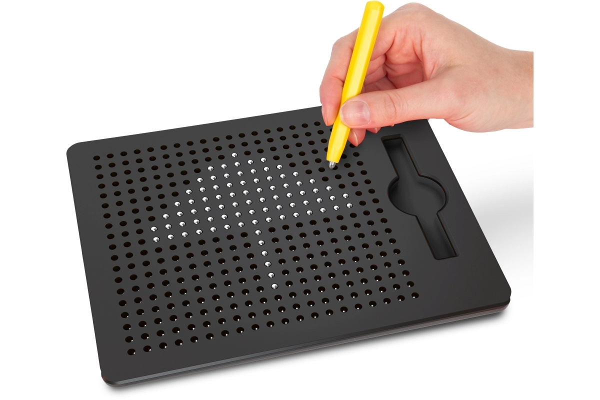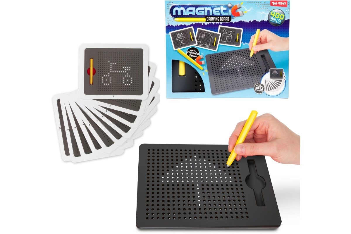 Ta magnetna tablica omogoča otrokom risanje z magnetnim peresom, ki izvleče kovinske kroglice na površino in tako ustvari natančne pikčaste slike. Brez črnila in brez nereda – idealno za večkratno uporabo in kreativno igro.
