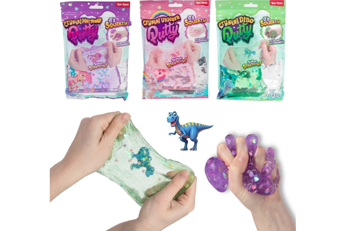 Odkrijte čar ustvarjalne igre s sluzjo z bleščicami, ki privlači z živahnimi barvami in presenečenjem v obliki figurice, skrite v notranjosti. Otroci bodo uživali v stiskanju, oblikovanju in raziskovanju teksture, medtem ko bleščice poskrbijo za privlačen videz.