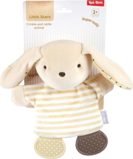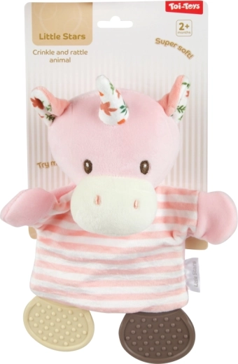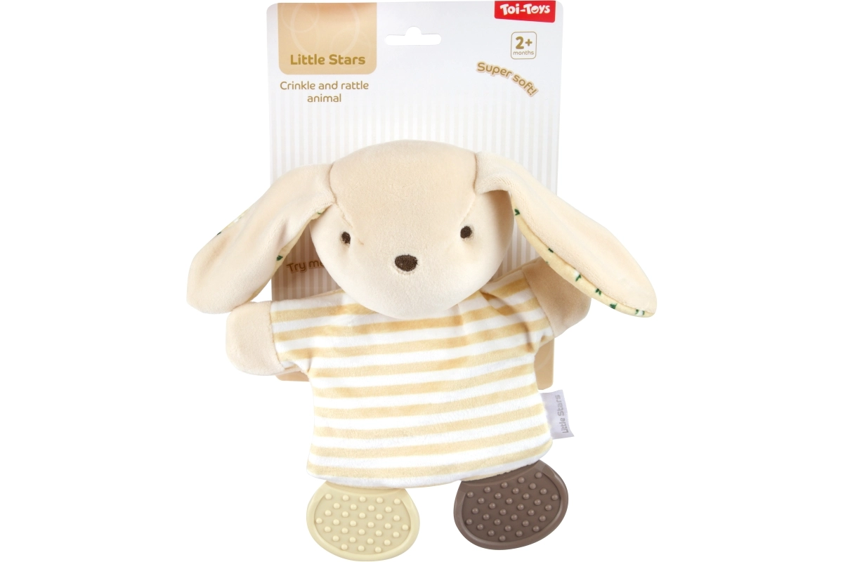 Ta mehka igračka je idealen prvi spremljevalec za najmlajše. Zaradi plišastega materiala je varna in prijetna za crkljanje, medtem ko šušteče telo pritegne pozornost ter spodbuja sluh in dotik otroka. Lahka zasnova omogoča enostaven oprijem v majhnih ročicah.