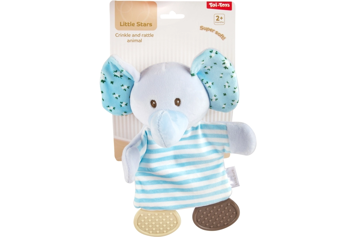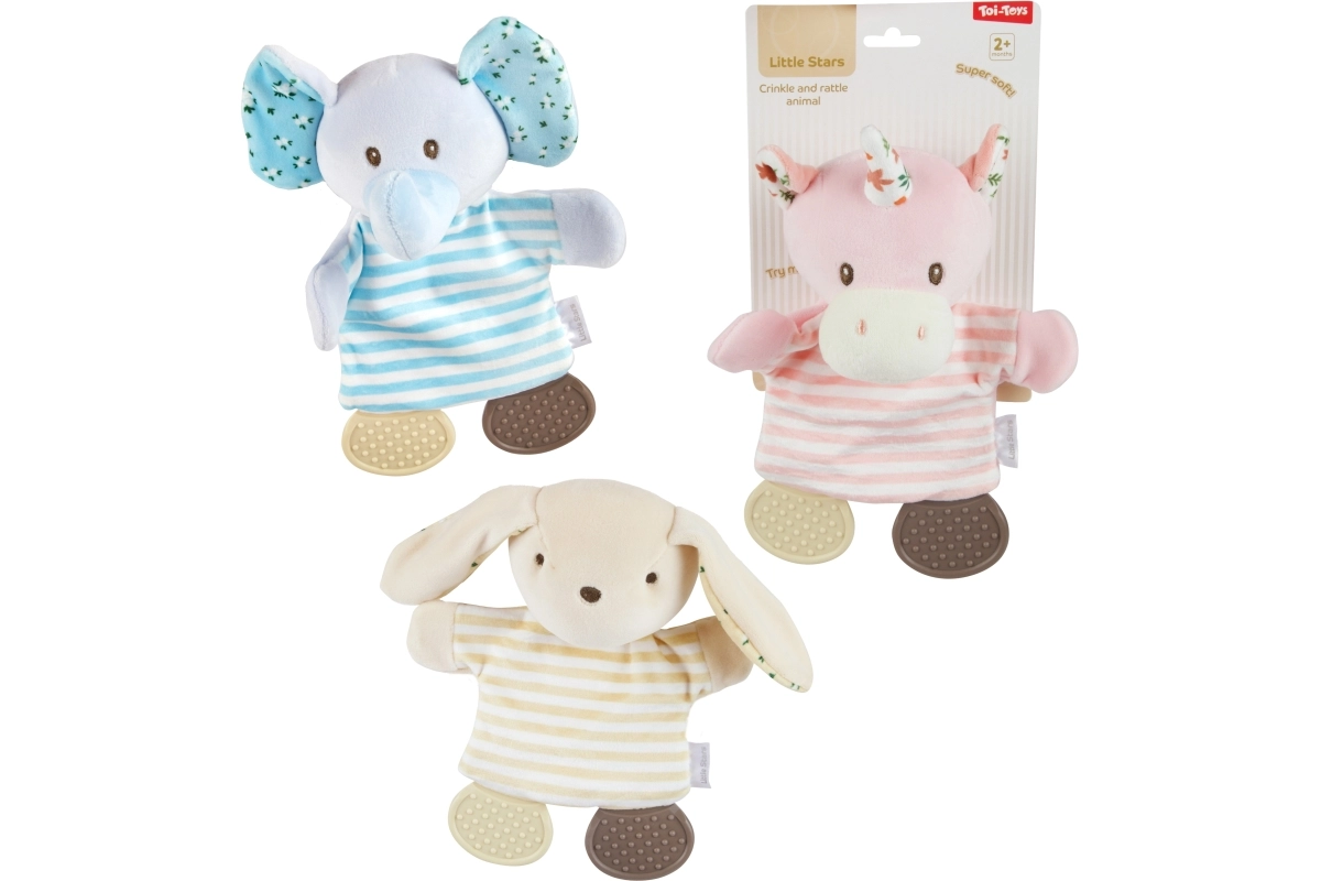 Ljubka plišasta ropotuljica v obliki živalice razveseli vsakega dojenčka od 2 mesecev dalje. Mehak material je prijeten na otip, telo igračke pa ob prijemu nežno šušti, kar spodbuja razvoj čutov in fine motorike. Na voljo so različne vrste živalic glede na trenutno razpoložljivost.