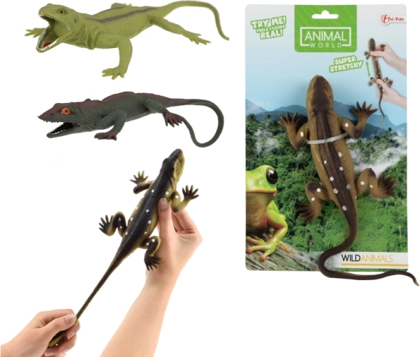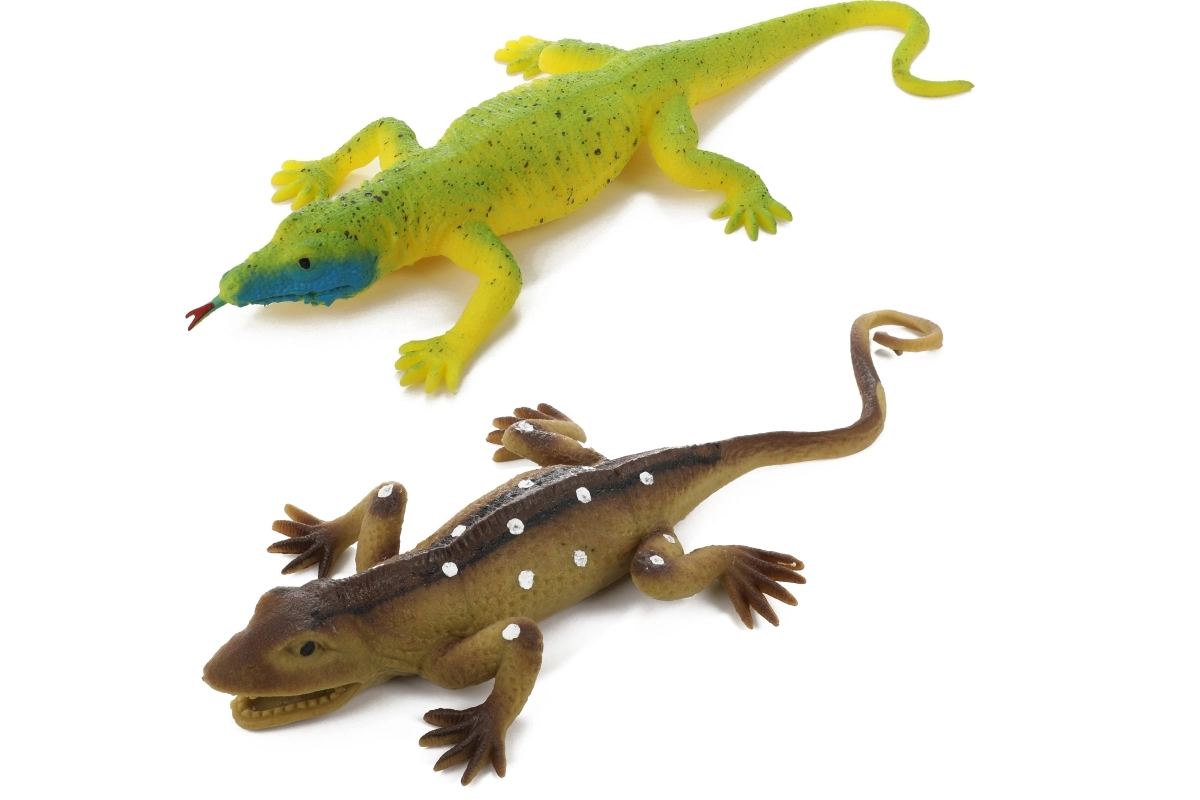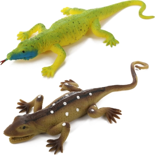 Igrača je iz kakovostne plastike z elastičnimi elementi, preprosta za vzdrževanje in idealna za otroško sobo, vrtec ali na pot. Pakirana je na kartonu za enostavno podarjanje. Dimenzije kuščarja približno 24 × 12 × 3 cm lepo sedejo v majhno roko in podpirajo varno igro.