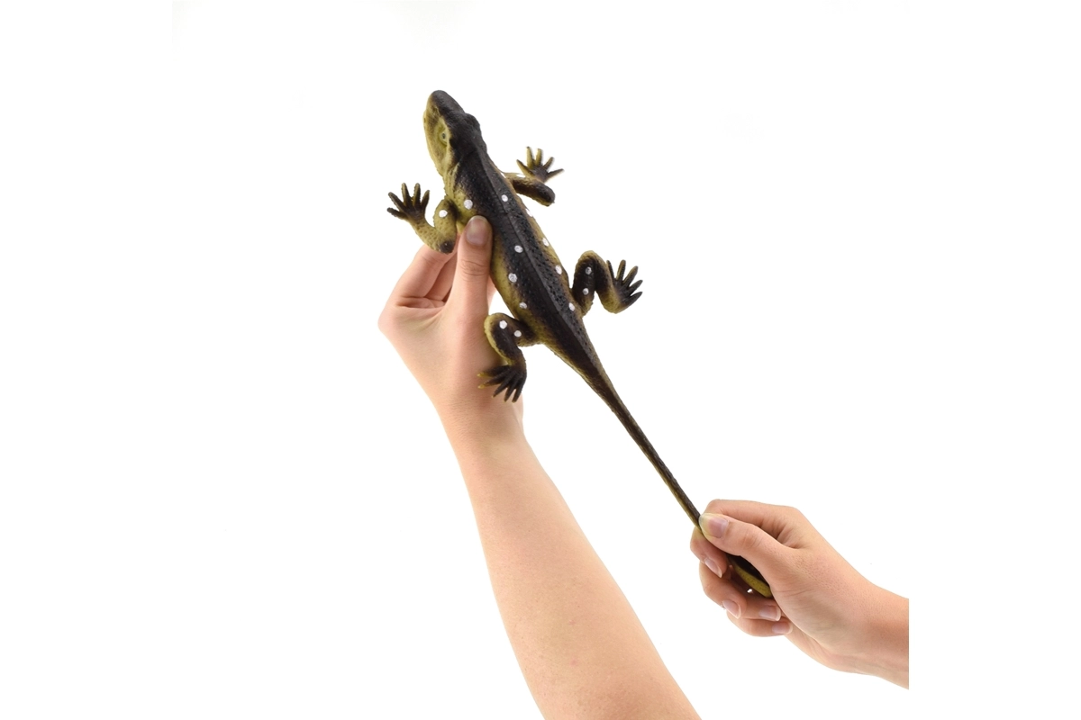 Ta raztegljivi gumijasti kuščar je odlična izbira za domišljijsko igro, razvoj fine motorike in senzoričnega zaznavanja. Zaradi teksturirane površine in kroglic v trebuščku nudi antistresno in tipno spodbudno izkušnjo. Otroci lahko kuščarja raztezajo, stiskajo in oblikujejo ter pri tem odkrivajo strukture in oblike.