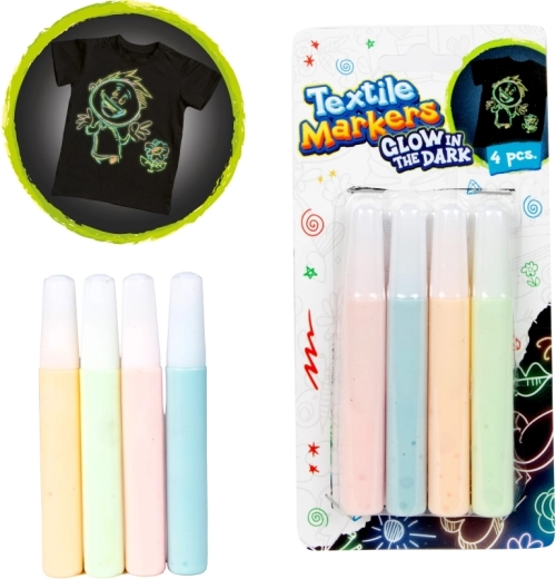 Ustvarite izvirne potiske majic, torb in drugega tekstila s tem setom štirih tekstilnih flomastrov, ki svetijo v temi. Pastelni/neonski odtenki se enostavno nanašajo in zagotavljajo živahne motive, vidne tudi po ugasnitvi luči. Idealno za ustvarjanje z otroki od 3 let naprej in za kreativne projekte odraslih.