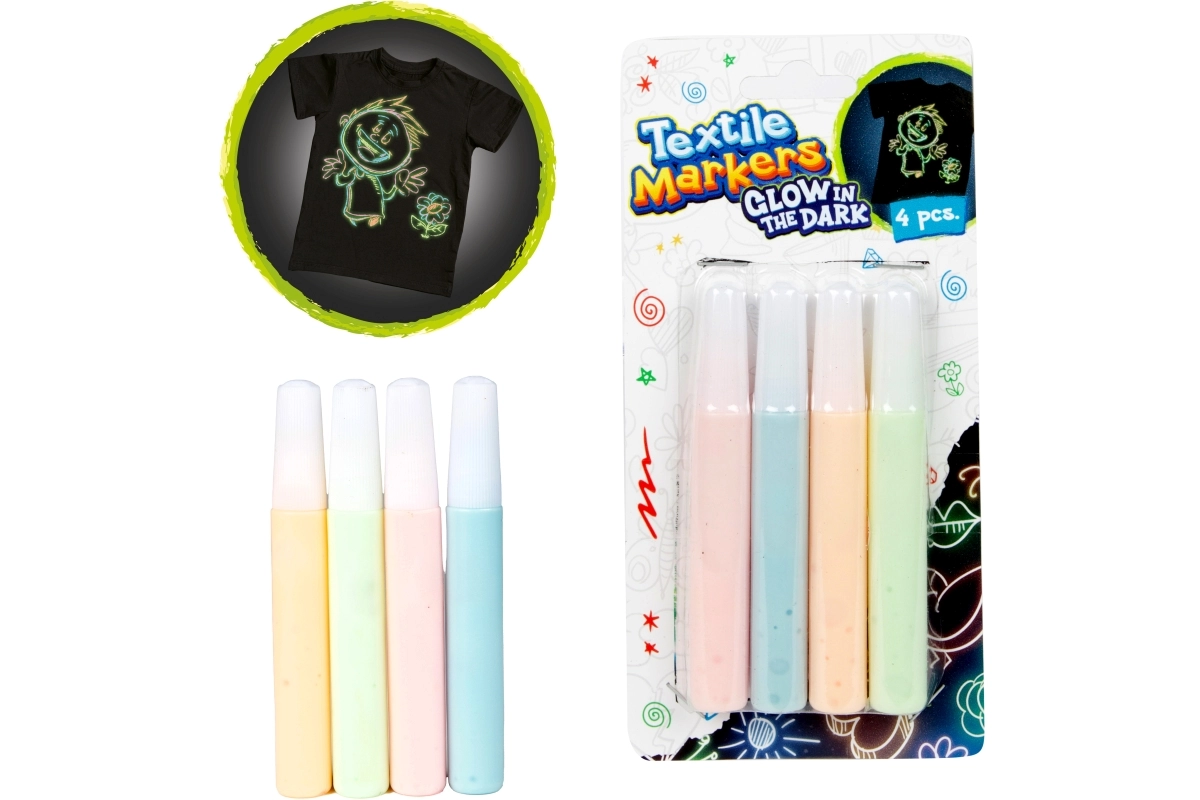 Odkrijte zabavno okraševanje tekstila s flomastri z učinkom svetljenja v temi. Enostaven nanos, udoben pokrovček in intenzivne barve omogočajo risanje detajlov in večjih površin na majice, puloverje, torbe ali blazine.