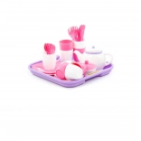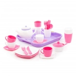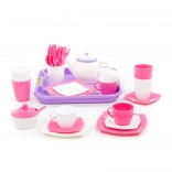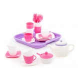 Rožnato-bela čajna garnitura s pladnjem - 35 delov